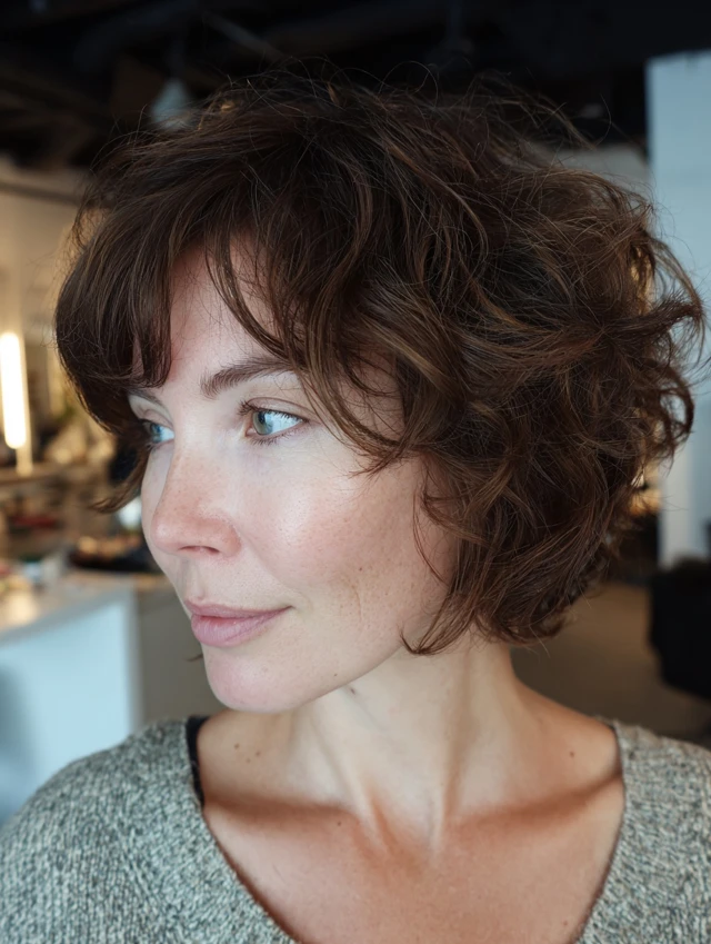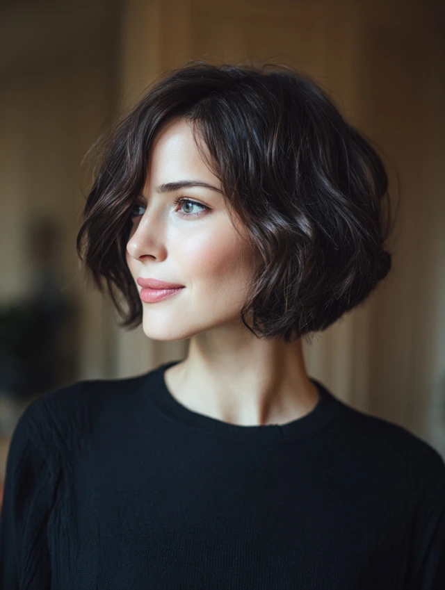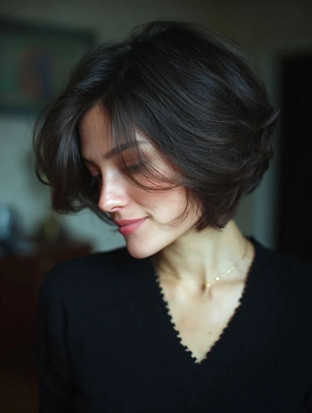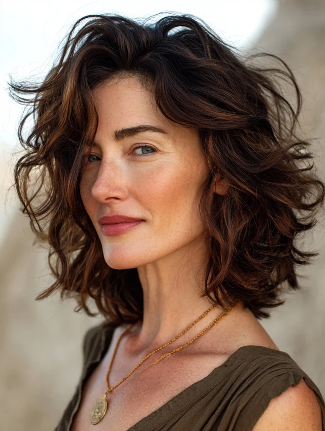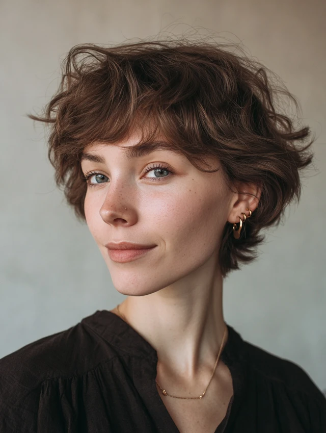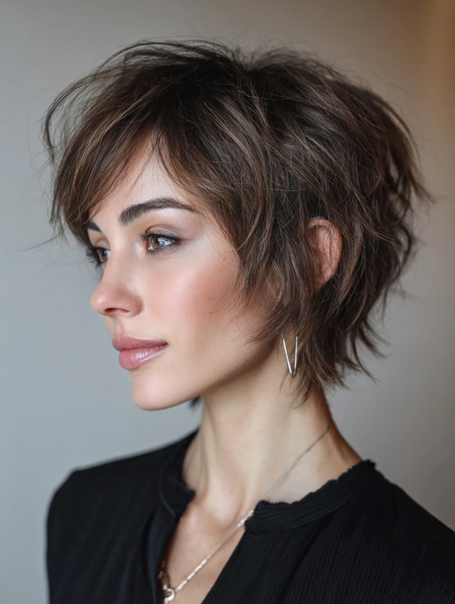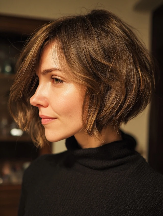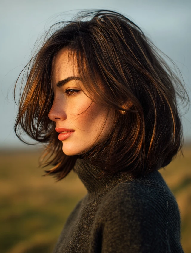A modern shaggy bob introduces light crown layers and textured ends for lift. The shape feels airy instead of boxy. Subtle movement keeps the cut youthful and current.