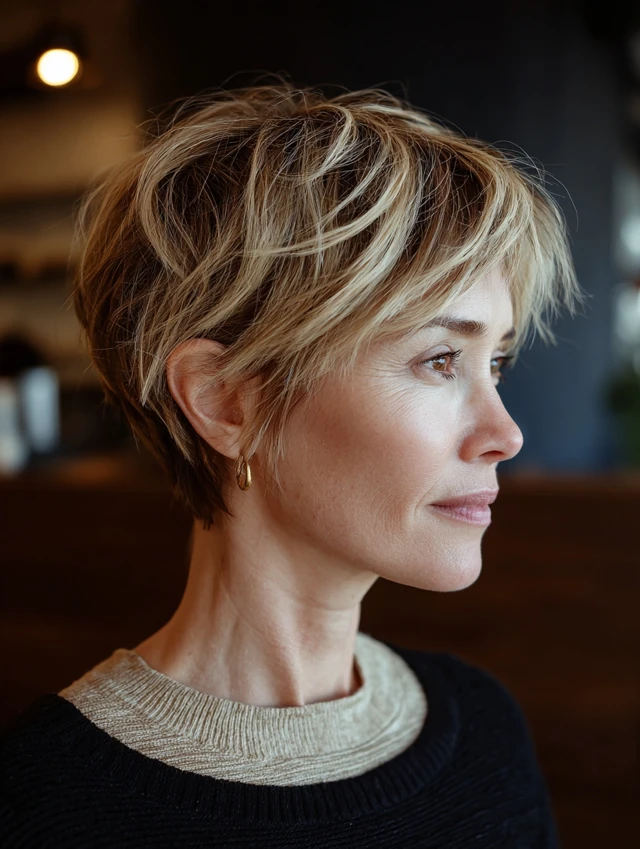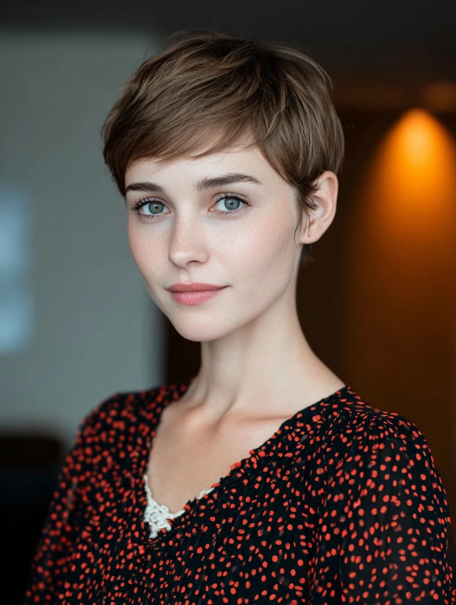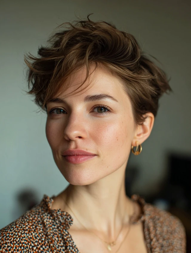 A soft pixie keeps the sides slightly tapered and the top layered for lift. The result feels feminine and easy to manage. Light texture adds softness without stiffness.