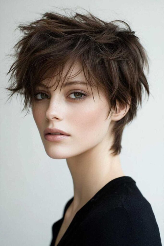 Short hair doesn’t have to be boring in winter. A textured pixie cut gives you a playful, edgy look that pairs well with chunky scarves and coats.