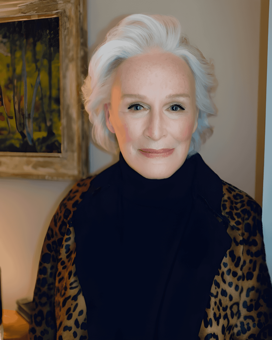 Her silver hair falls in gentle waves with tousled layers that move naturally. The long, face-framing pieces create a relaxed, timeless style that looks effortlessly beautiful.