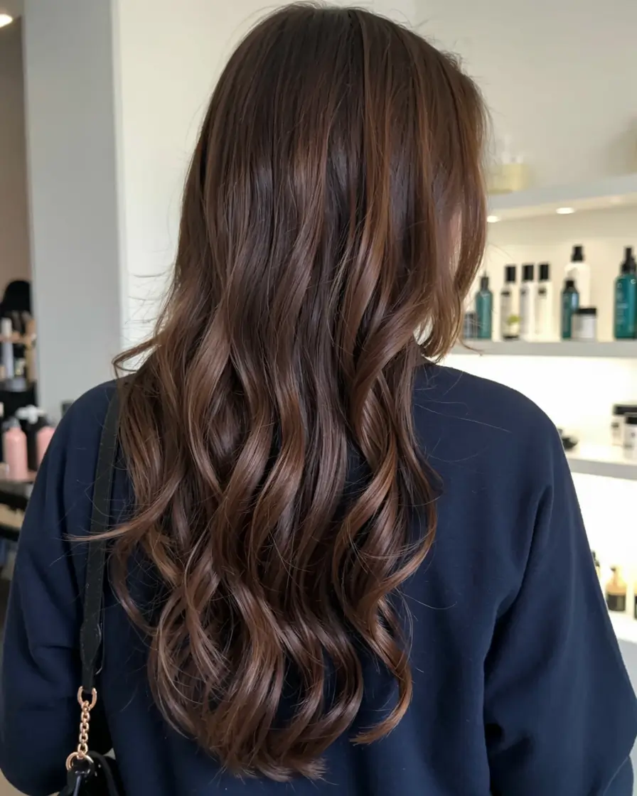This look is all about flow. The dark brown color is neutral but with the slightest touch of warmth to smooth out the edges. It is sleek yet big, the kind of styling that gives you that liquid hair look that is everywhere on Reels these days. The bounce is real–and it goes with chunky knits as well as with silky dresses. And, in case you are all about high-shine and low-maintenance, this one is calling your name.