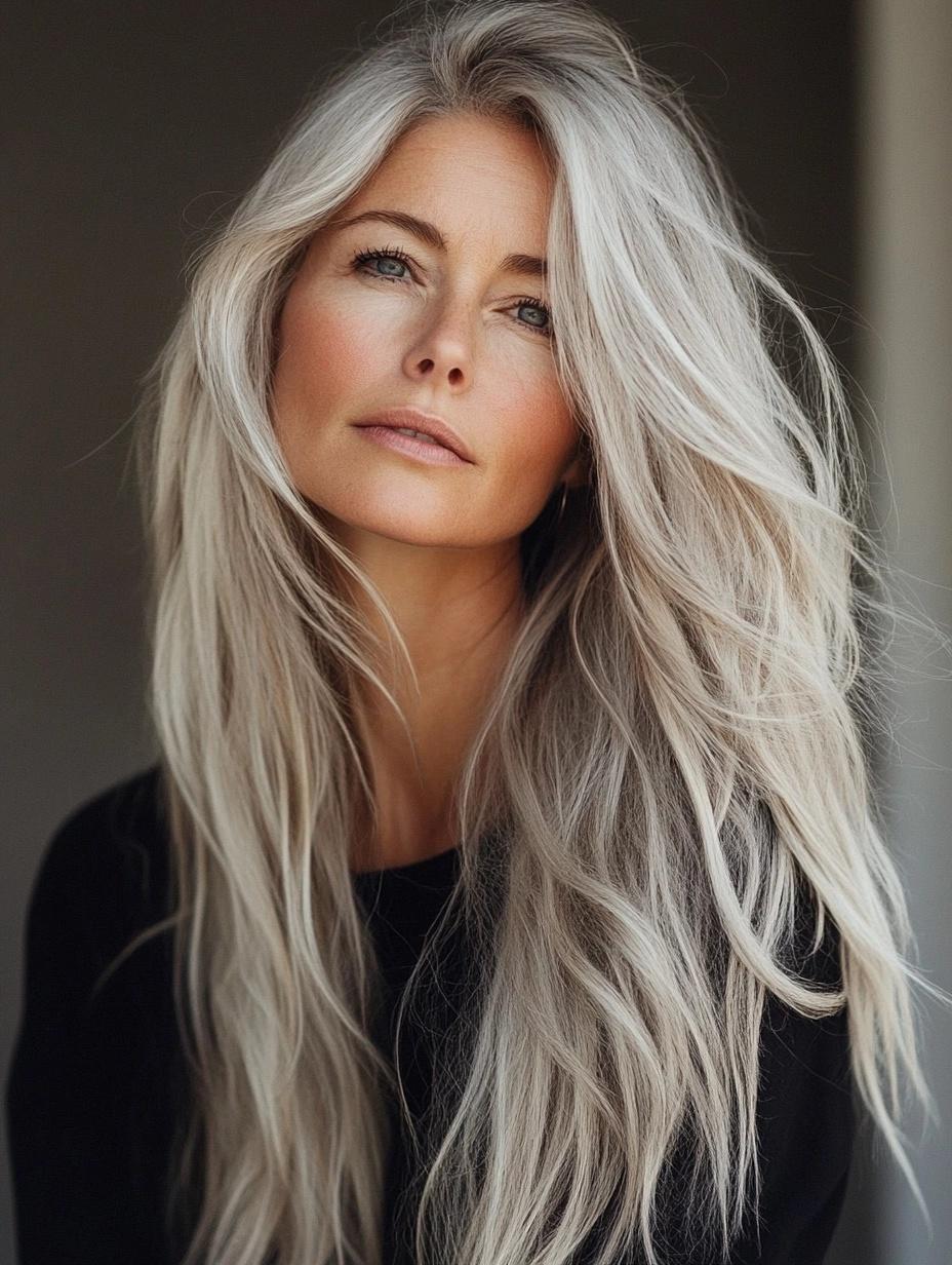 Long layered cuts are perfect for women over 40, providing dimension and movement while adding volume to the hair. Soft, cascading layers frame the face beautifully and work wonders for thinning hair by creating the illusion of fullness. As you browse the Pinterest images, look for examples of how layering transforms both straight and wavy hair, ensuring your long locks never feel flat or lifeless.Timeless Long Hairstyles For Women Over 40 – Ideas For Chic, Sophisticated LooksTimeless Long Hairstyles For Women Over 40 – Ideas For Chic, Sophisticated Looks