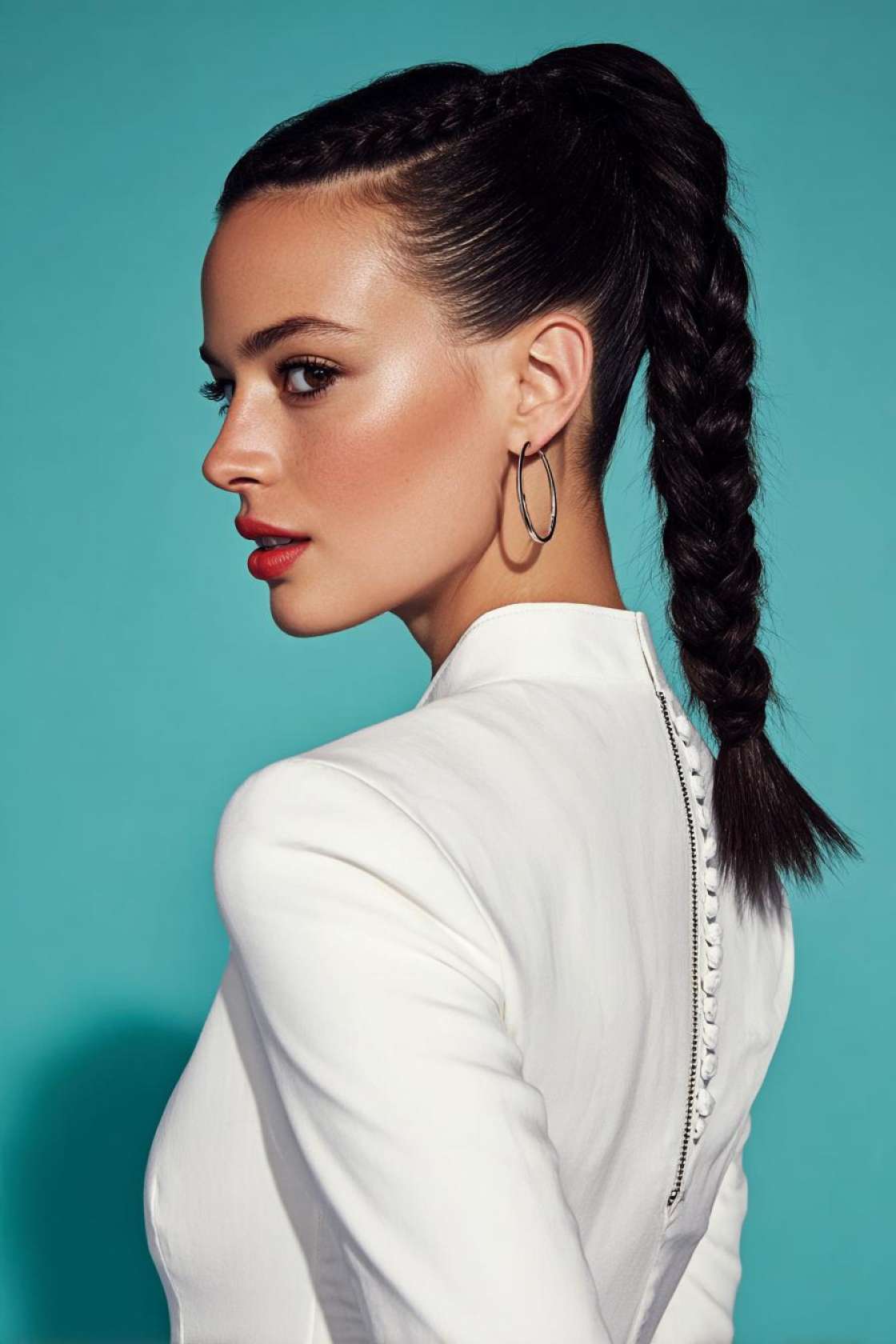 The braided ponytail is practical. It’s also very stylish. You can braid the ponytail itself. Or braid before forming the pony. I love it for keeping cool. For a sleek finish, use gel at the roots. For volume, tease the ponytail before braiding. It’s a chic, functional look.
