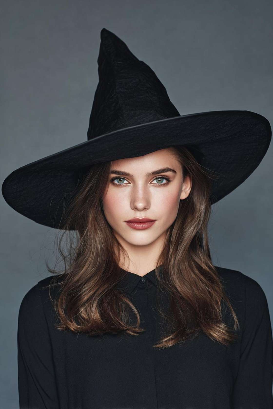 This simple, iconic look is ideal for a traditional witch costume. It’s all about the hat! Secure your witch hat firmly with bobby pins. This ensures it stays put while you cast spells.