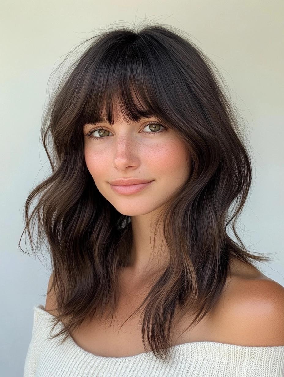 One of the major benefits of shoulder-length hair with curtain bangs is its ability to suit all face shapes. Whether you have a round, oval, or square face, curtain bangs can be adjusted to highlight your best features. Browse through the Pinterest photos to discover how this hairstyle adapts to different face shapes, enhancing natural beauty in every case.