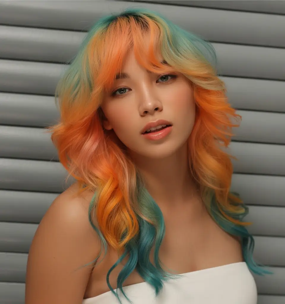 Let’s talk color. Its fiery looking orange base to cool looking teal-blue is a base to anyone who is ready to make the season hot as well as cool. This two-toned combination is something just so 2025 wavy hair and so now. It is like sunset and water together, and together it just flows. The curl pattern? Airy S-waves which tumble and twist in the light as one takes each step.