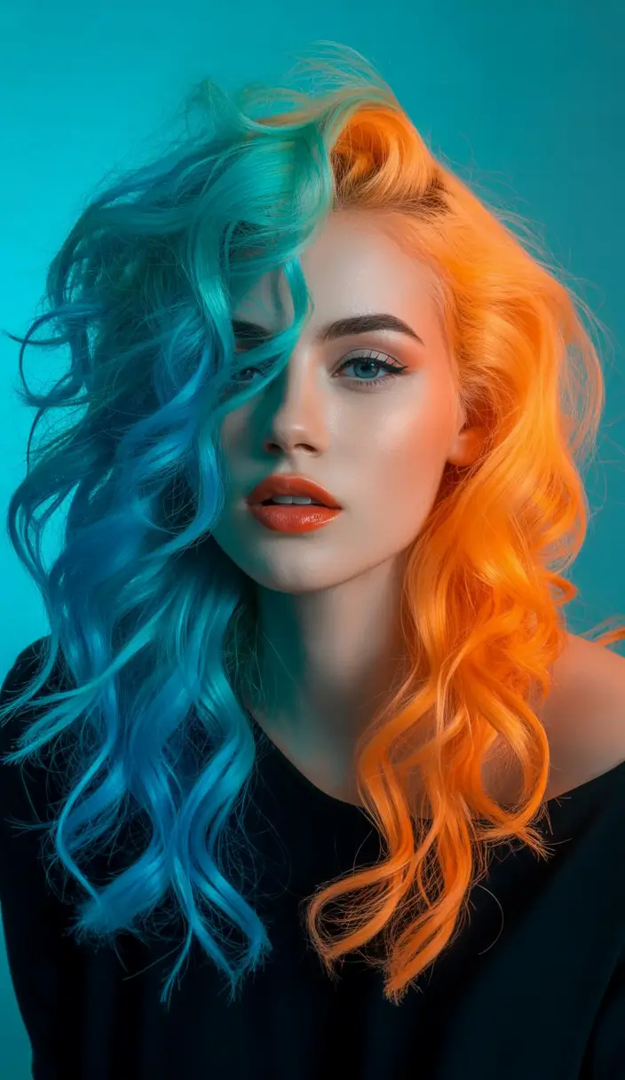 Fall hair color Blue-Orange Power Clash