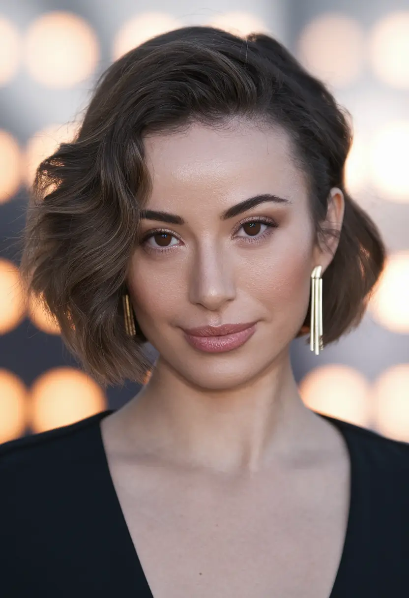 A short bob with a curled under and a structured side part is something easily chic. The layers in this case are very close to the cheekbone creating an illusion of volume and lift- a perfect choice to women with thin hair or just in need of a cute, timeless shape. The slightly voluminous wave gives that done but not overdone effect, particularly when it is combined with a modern minimal dress or cozy wool trench coat.