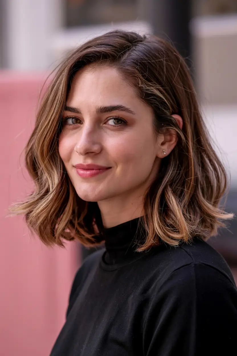 The gently flicked ends on a medium bob are, in a way, something fresh per se; more so when it is admirably complemented by blended and multidimensional high lights, as suggested by these. The trim lightly touches the collarbone with a touch of natural movement and does not look to stacked or overdone. The delicate face-framing accessories add light exactly where you need it, close to the eye and cheek portions. And the base color? Warm chocolate brown and perfect as first-and-last of pumpkin spice autumn season. This appearance will speak: easy, mature and slightly sexy.