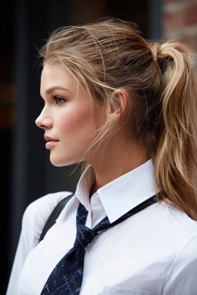 For a sharp, polished look, the sleek high ponytail is perfect. It’s chic and incredibly practical. This style keeps hair off your face and neck. It’s ideal for warmer days or focused study sessions. To achieve a smooth, flyaway-free finish, use a styling gel or cream. Brush your hair upwards smoothly. Secure it tightly. It looks so sharp.