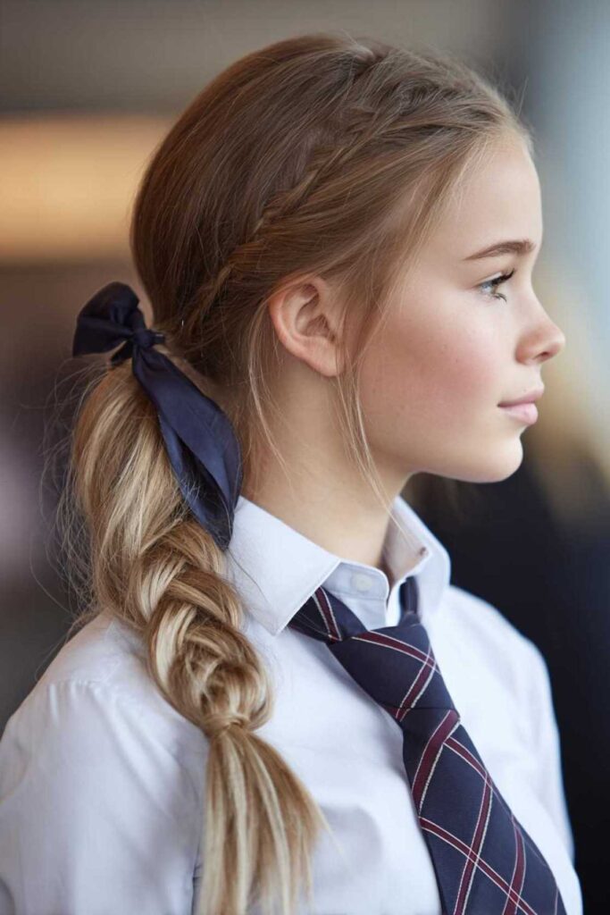A high ponytail feels so energizing. It’s also super practical for school. To add a little something extra, wrap a strand of hair around the elastic. This hides the band and looks polished. Want more volume? Gently tease the ponytail. Or, use a volumizing spray before you start. It’s a simple way to make a statement. For more ponytail ideas, check out these party pony hairstyles.