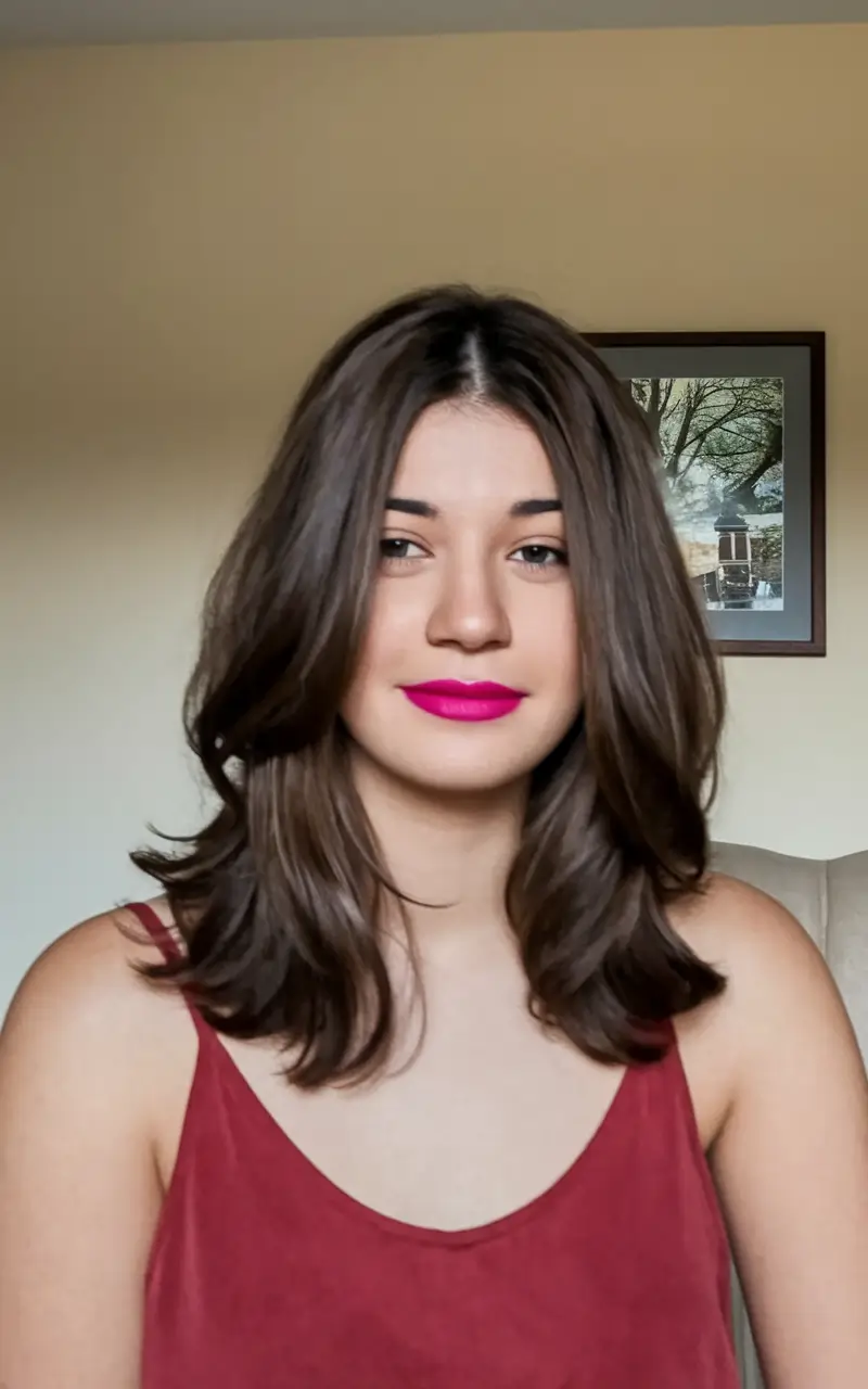 This natural wave on mid-length hair is the dreamiest I woke up like this, but better vibe. The ends are slightly flipped out and the middle is easy, which makes it a win in terms of lift around the crown, which is a great look on round face shapes. It is not surprising that this style remains the most popular one in Pinterest boards season after season. It simply works, particularly when it comes to fall haircuts 2025 medium round face inspiration updated to now.