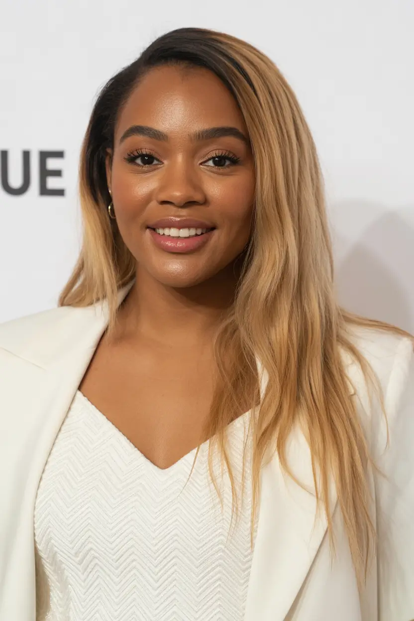 Buttery dimension, soft waves, bangs that are playing with your eyelashes, this look is like they have never run out of time during the golden hour. It is the type of blonde that is not screaming, but hissing. The mixture of light honey and warm beige creates the sense of cozy-glow minimalism ideal in winter hair colors to dark skin enthusiasts who are not afraid of making things bright in the colder seasons.