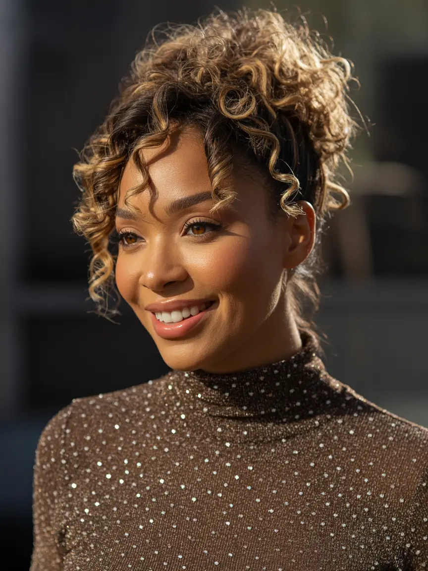 As the lights strike the highlights, they shine like gold dust that is what makes this one so special. Nai’vasha Johnson, a celebrity stylist, frequently refers to the fact that the arrangement of color in curls can give light a light to a move, and this appearance proves her correct.