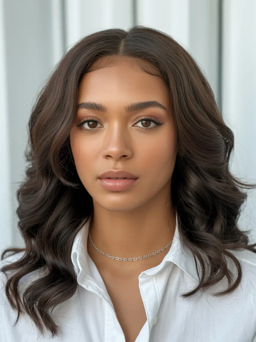 Mocha pearl, it is like a luxury to say it. This appearance is a blend of intense espresso base and pearly ashy tones that outline the face and run in long waves. The outcome is cool, dimensional, with a touch of the soft focus effect of film lighting that is generally only found in film lighting.