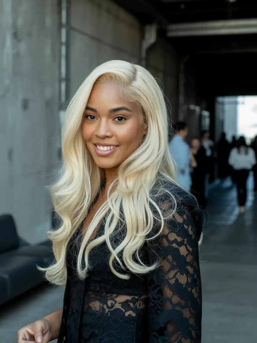 This appearance – soft champagne Blonde which fades into smoky lowlights – is winter elegance, distilled. The light and shadow make it look that contemporary aspect that everybody is striving after. It shines with warm light and changes to icy and otherworldly with cool tones. It is the type of color that breathes in a different way in each room that you enter.