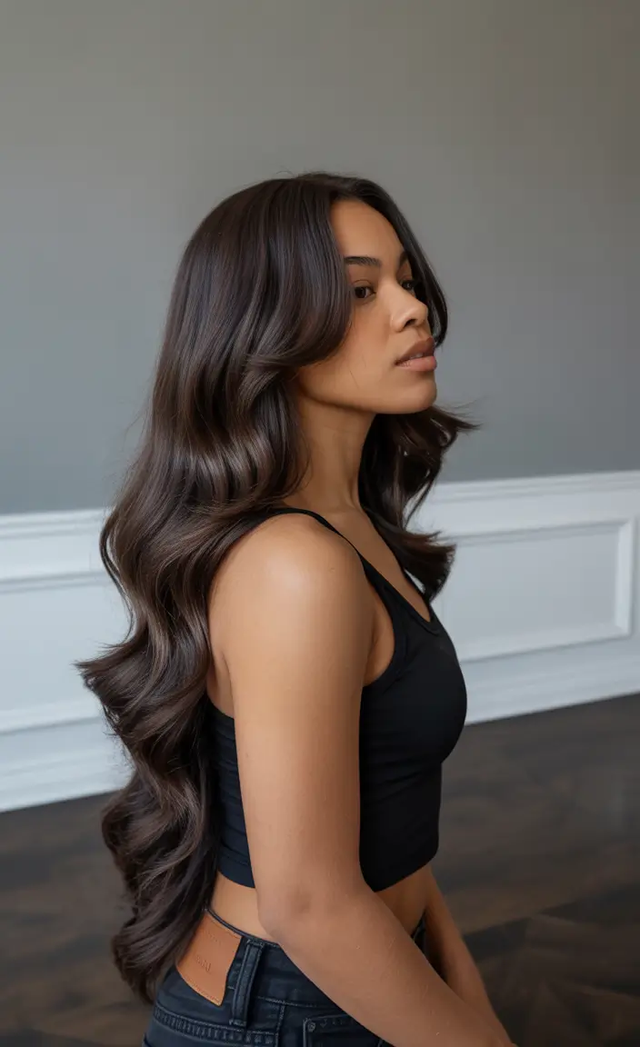 This is a style that brings vitality to quiet luxury the long, glossy waves that appear to have you wake up wanting to be on the cover of Vogue. I adore the simplicity of it, the number of layers is kept to a minimum, there is a natural center part, and the soft, polished finish that is never out of the fashion.