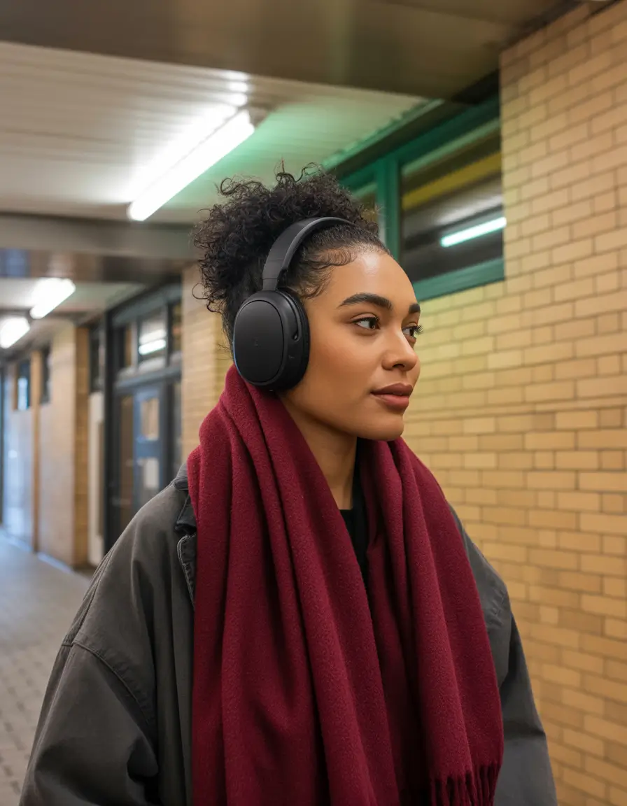 This appearance also brings me to the idea of urban strolls music on, scarf wrapped around the neck, daydreaming. It is not too dressed up; it is sincere. It informs the world, I have woken up, I have taken care of myself, and I am ready.