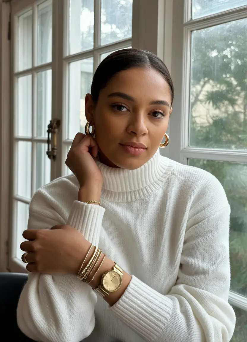 This fashion is characterised by cool gracefulness – a smooth, rolled bun and minimal accessories and gold jewellery. It is clean, architectural, and classic. I adore the way it fits with the winter wardrobe, such as turtlenecks and knitwear, and transforms the regular basicness into elegance.