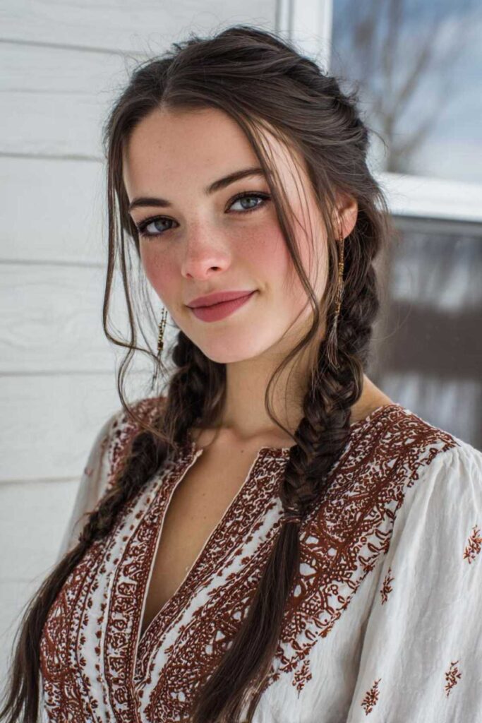 Sometimes simplicity is the ultimate statement. This traditional half-way hair with natural and natural curved structures and deep brunette shades is subtle stylishness. The color is an ideal basis of autumn haircuts ideas 2025 as it is in harmony with the earthy range of colors of the season and perfectly complements warm-layered outfits.