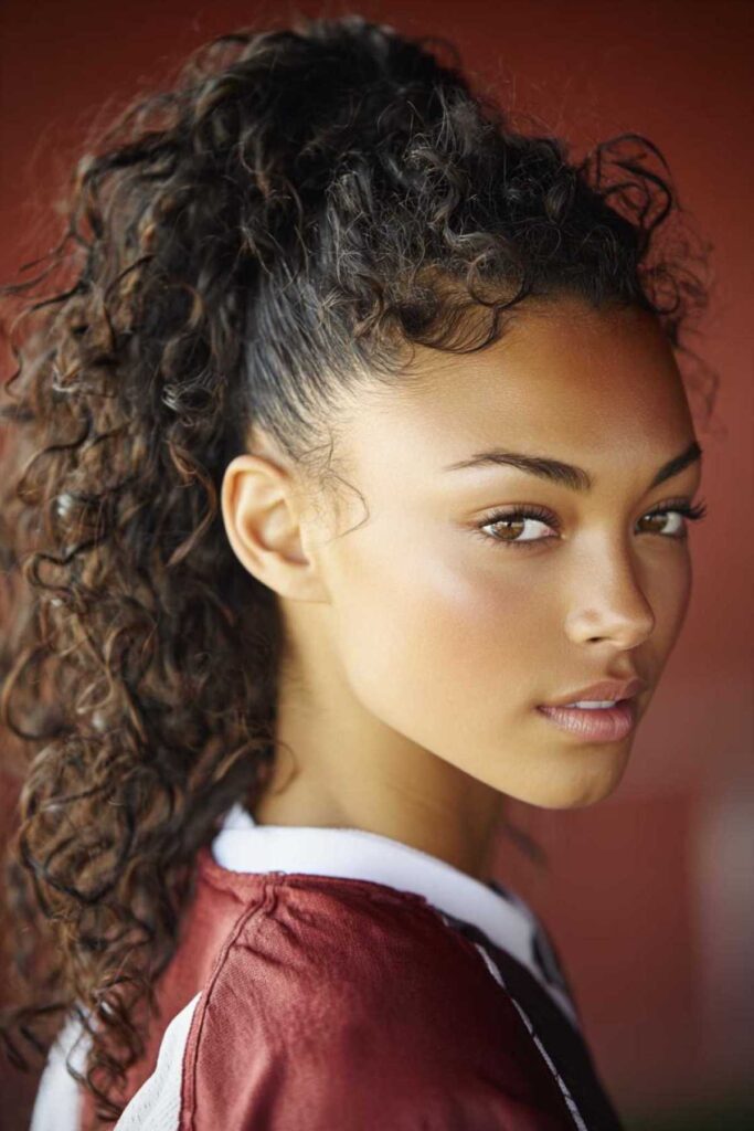 It is one of the power moves when a person wears their natural curls. The round bangs do go together with the shape of the face, and the mid-length curls form vertical motion. Everything feels intentional but free, and that volume? Chef’s kiss for fall layering and structured jackets.