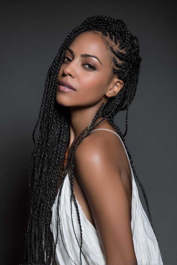 It would be amazing as well pulled into a low bun or even braided anything that would allow the light to play on those chestnut-red curves.