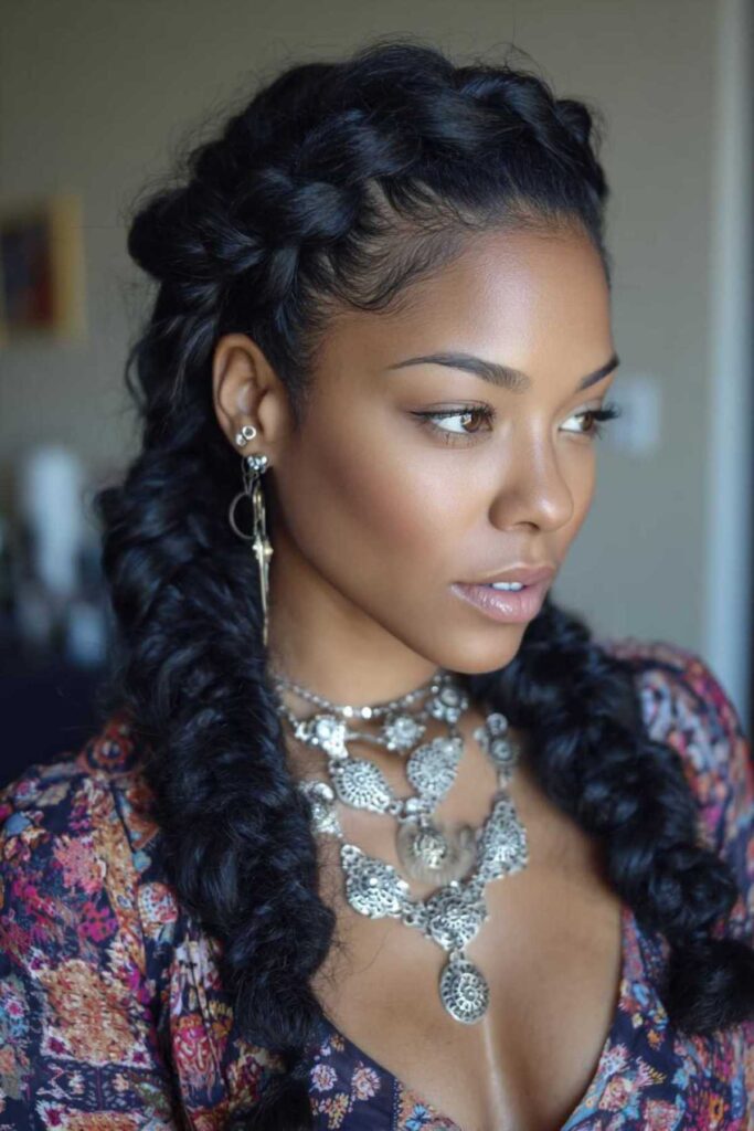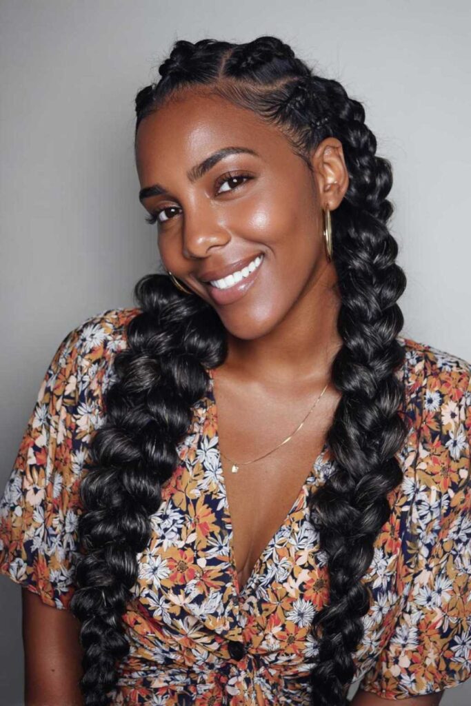 I attempted this look at a job interview last fall, black dress, dewy makeup, this hair, and it was a power move. It tells you that you have your life together, even when you do not feel like that yet.