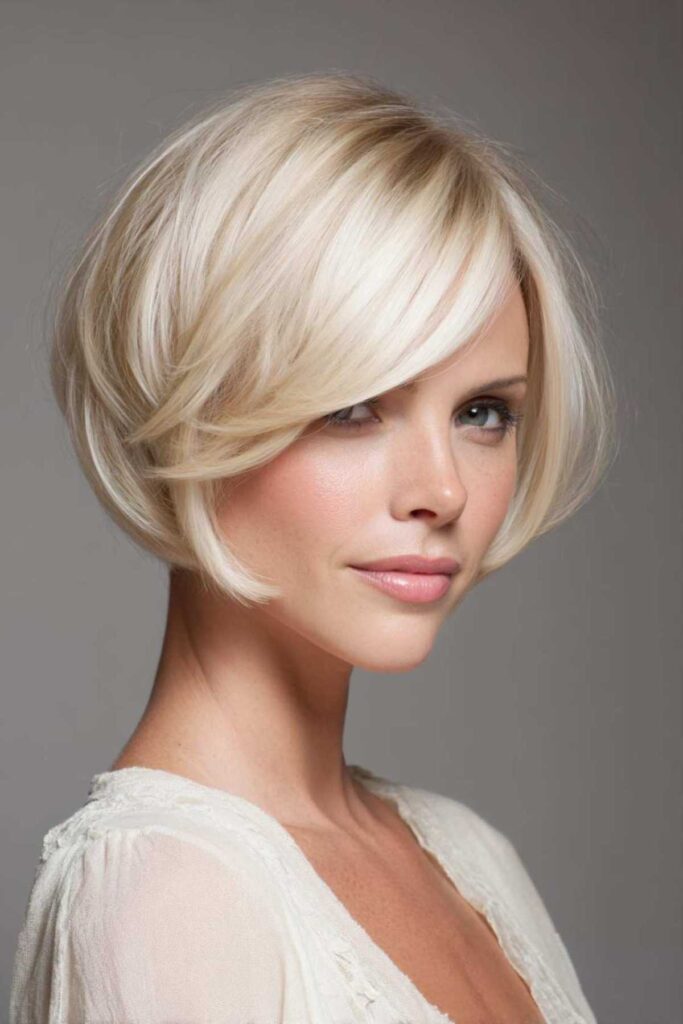 Energy, talk about energy, this platinum blonde tousled pixie is loaded with it. The layers add the motion and lightness, and the blonde icy? It’s striking without being harsh. A choppy fringe that is soft will ensure that this look is not severe.