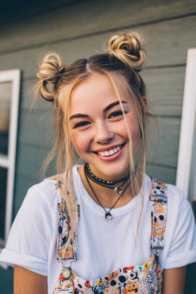 Come on, it happens: there are days when you want to vomit and get out. It is a mini half up bun that provides you with the right amount of structure and leaves the rest of your medium hair or short hair free. It is casual, fun and the answer to the third-day hair issue.