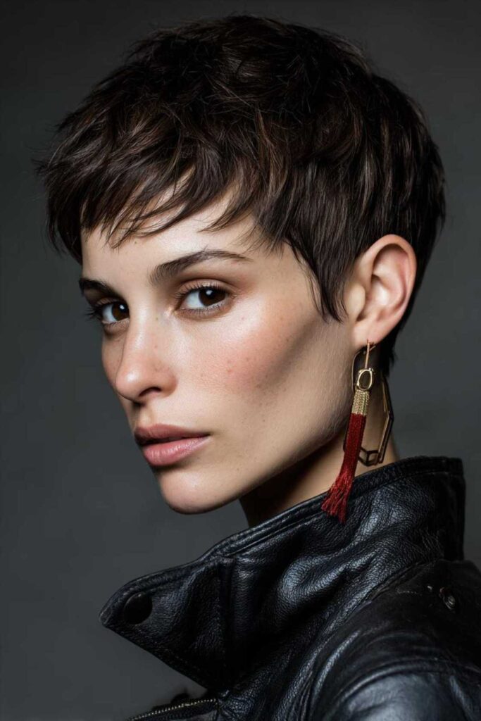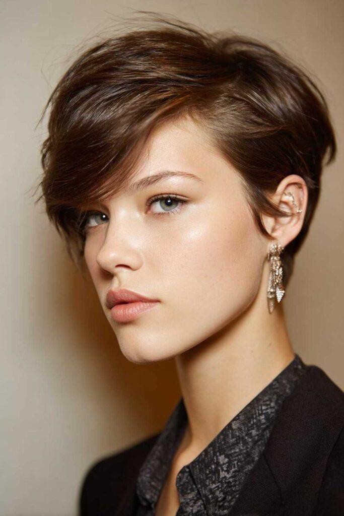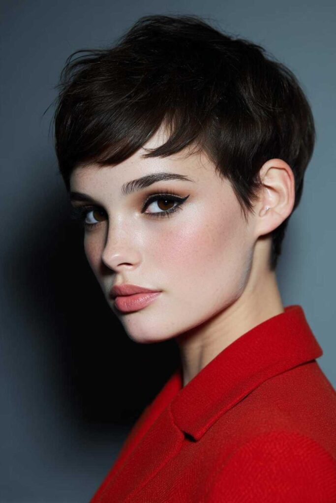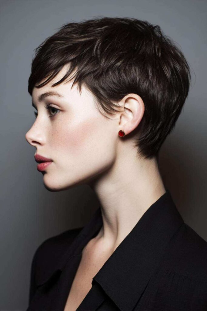 The thing I like about this pixie is that it is a statement with little maintenance. You wake up and—boom—it’s done. That sort of ease is so strong, there is something so strong about it, particularly when mornings are darker and colder.