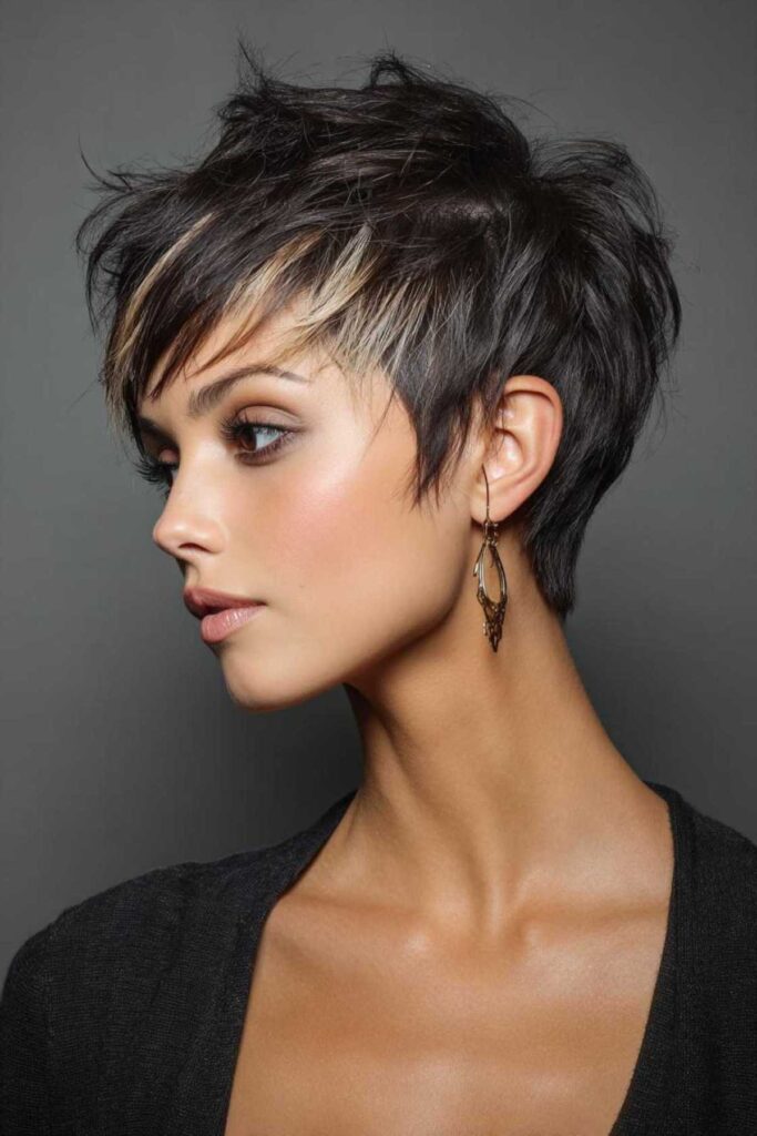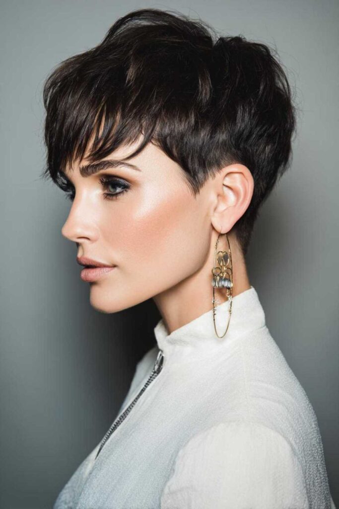 To you ladies who are considering cutting it shorter this season- this short and ultra-layered pixie may be your chance. It caresses the head and gives volume at the crown, and the straight hair finish makes it crisp, deliberate, and sophisticated.