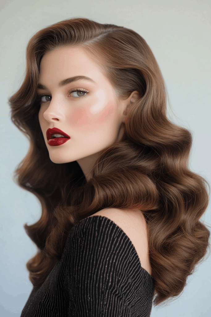 Rich espresso brown colors are in forever, but they are even more attractive when there is a winter. These dark slick curls play with its light in such a manner that is both smooth but too natural; it seems to be like satin ribbons cascading down the back of the curls. The waves are layered to give it effect to make the dark color not to look flat. It is a sophisticated colour that does not incur any extra highlights.