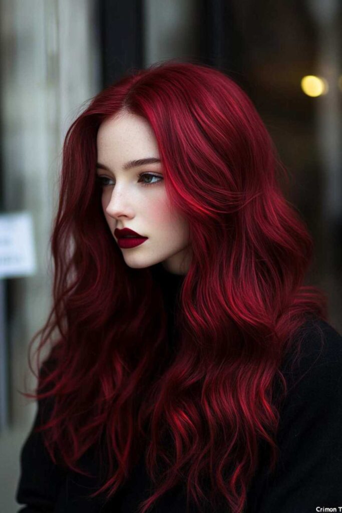 Everything that I wish a red of winter to be, this shade is: rich, multidimensional, and impossible to overlook. The crimson shade is tilted to a velvety texture, not lacking in slight details, which reflect brightness so well during the motion. Combined with slack, sleek, ways and layers that frame the face it gives the impression of much effortless though deeply luxurious touch, very much like the shade was fashioned to be placed on candlelit dinners and atop roofs among cocktails in December.