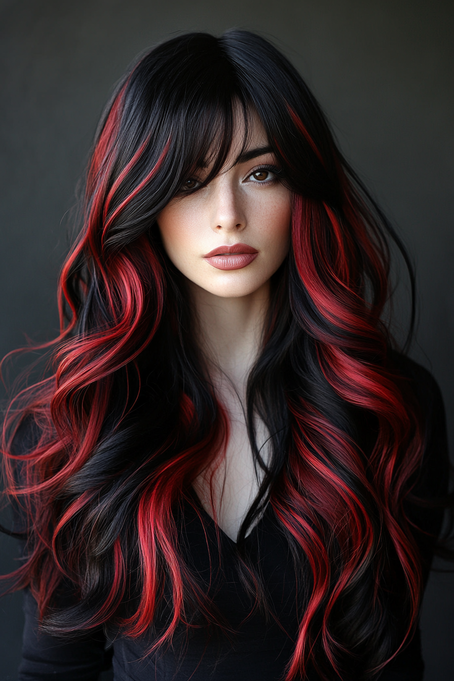 This combination is pure drama. A deep black base gets an electrifying boost from fiery red or copper highlights. It’s an eye-catching style that screams confidence and makes a powerful fashion statement.