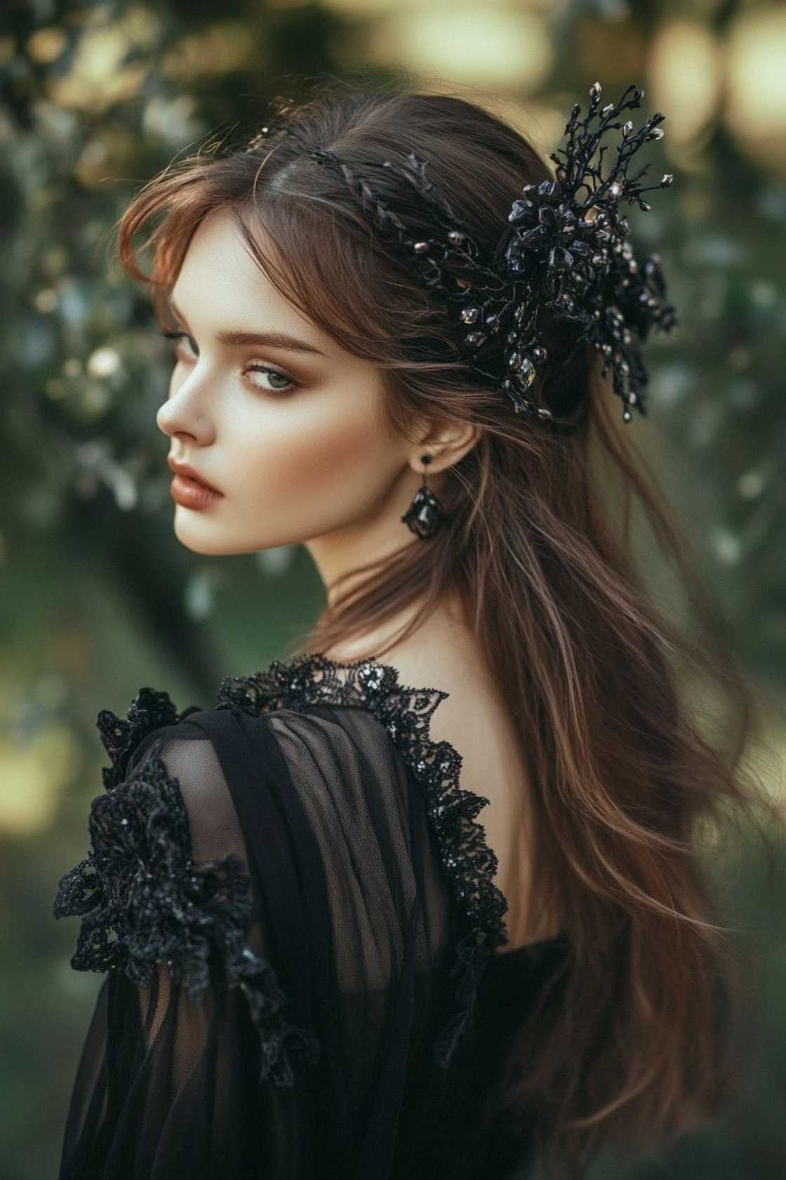 Simple twists with an accent braid work wonders. They create a charming, mystical half-up style. It’s an easy way to add witchy flair. Use small, decorative hairpins to secure twists. They add a touch of sparkle. It’s a sweet, subtle look.