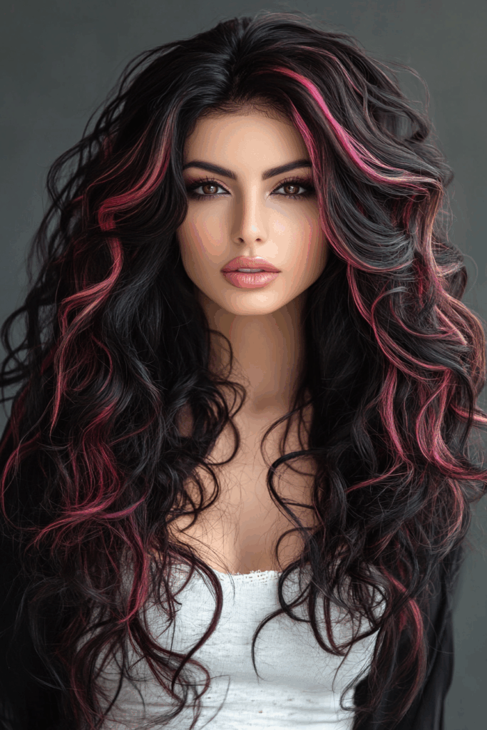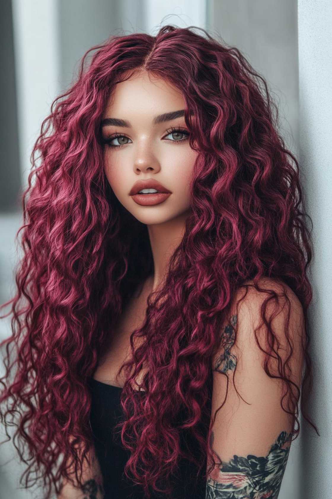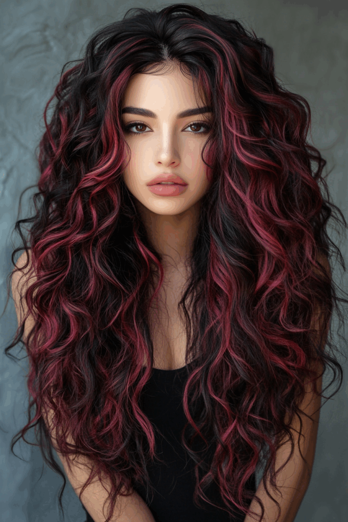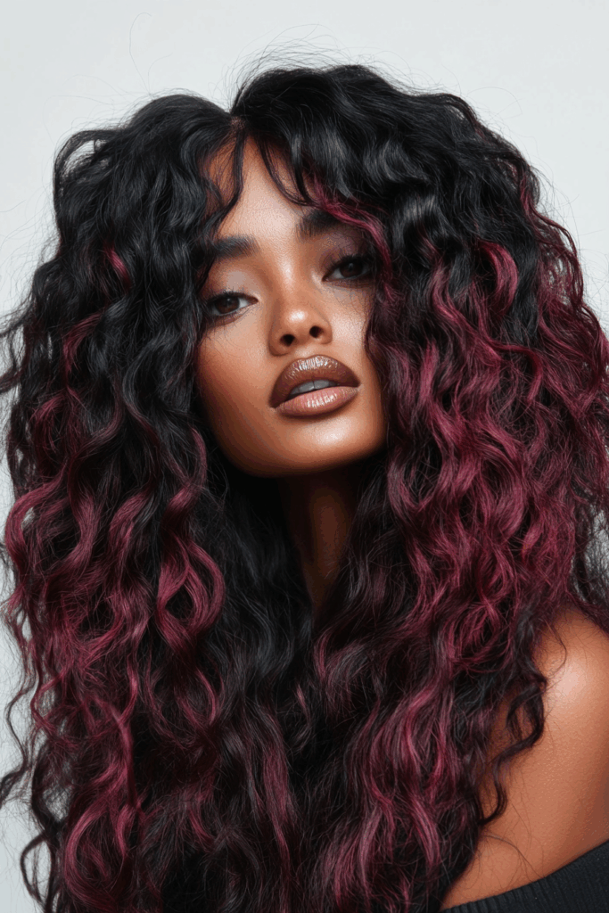 • Statement Style: 12+ Long Black Maroon Multicolor Curly Wig Looks with Highlights