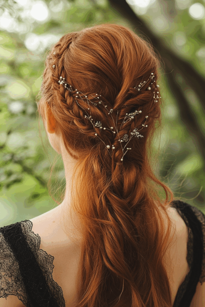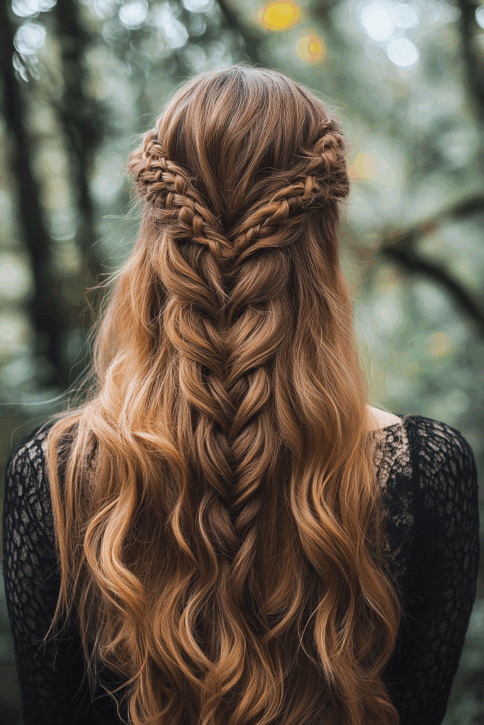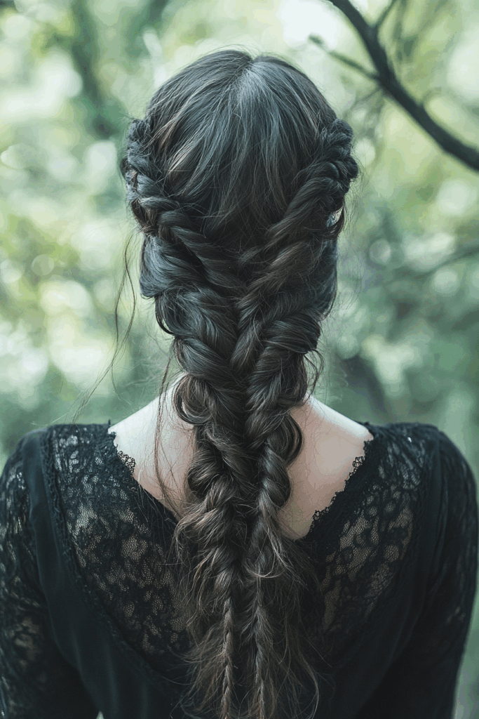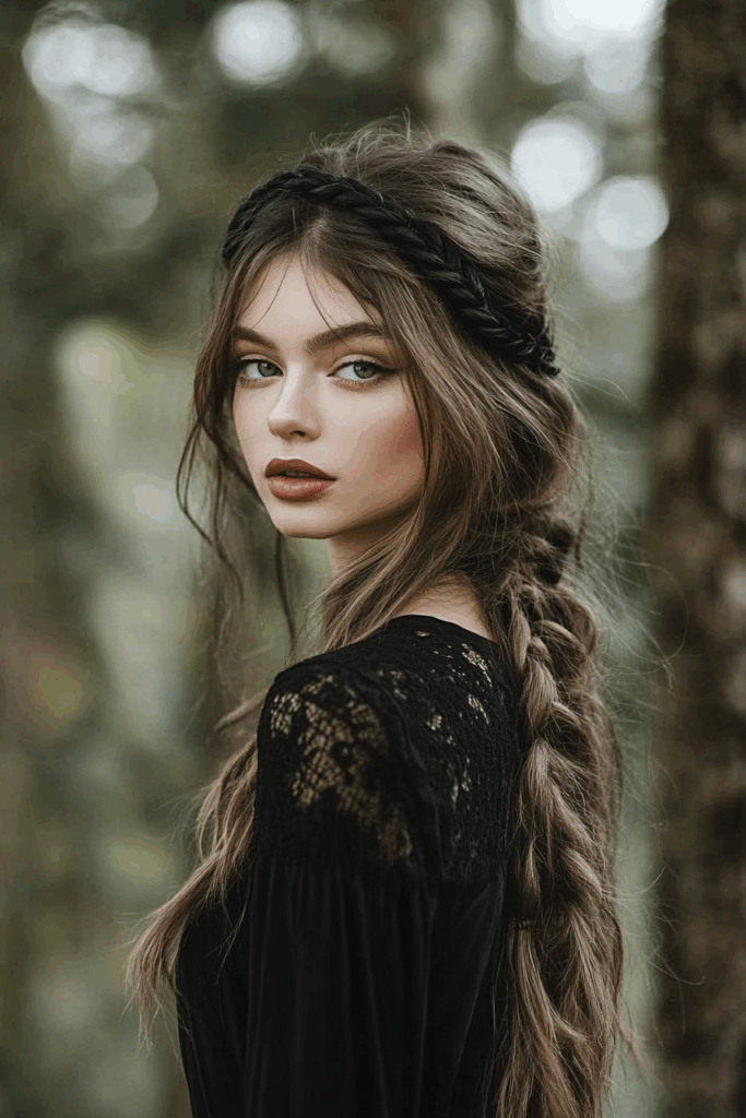 The fishtail braid offers such intricate texture. Adding twists makes it even more enchanting. This creates a bohemian witch vibe. It looks amazing on longer hair. Gently pull sections apart after braiding. This really enhances the texture. It’s like something from a mystical forest.