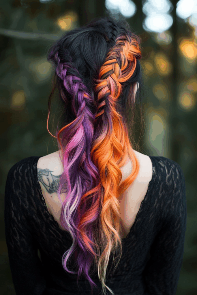 Create a striking contrast with dark roots. Add brightly colored braids for a modern witch look. This is great if you like experimenting with color. Use temporary hair color sprays. They give a commitment-free spooky pop. It’s a fun way to be bold.