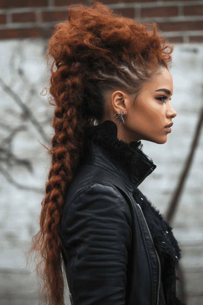 This braided mohawk makes an edgy, bold statement. Loose ends add a powerful witchy vibe. It’s great for making a strong impression. Secure the braid neatly with bobby pins. This ensures it stays perfectly in place all night. It’s a fierce look.