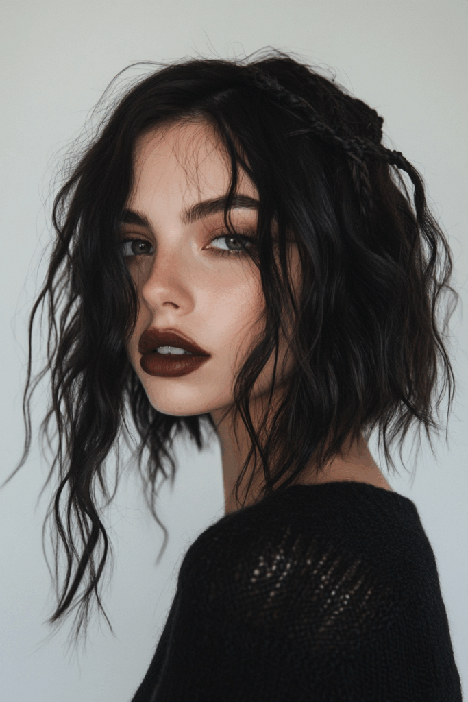 A wavy lob looks chic with a mysterious edge. Delicate face-framing braids enhance this look. It’s great for shorter hair lengths. This offers a modern witch aesthetic. Use a texturizing spray. It gives the waves and braids more definition. It’s a subtle yet striking style.