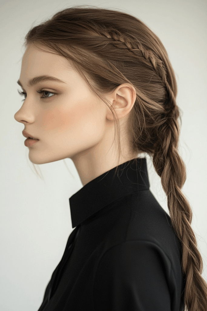 This braid flows like water. The Gentle Stream Braid is so soft. Its appearance is elegant and smooth. It’s suitable for many different occasions. From casual brunches to fancy dinners. For a polished look, use a smoothing serum. This ensures a sleek, fluid finish.
