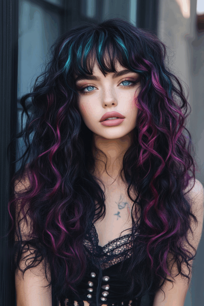 Inject some fun with playful multicolor streaks woven through curly locks. This look is artistic and vibrant, perfect for festivals or anyone who loves a touch of whimsy. It’s a real conversation starter!