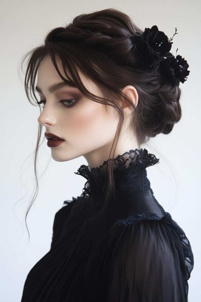 A low bun with wispy bangs feels soft and romantic. Delicate braids add to the witchy charm. This is versatile for a more subtle witch look. Gently pull out wisps around your face. This creates a soft, romantic effect. It’s understated magic.