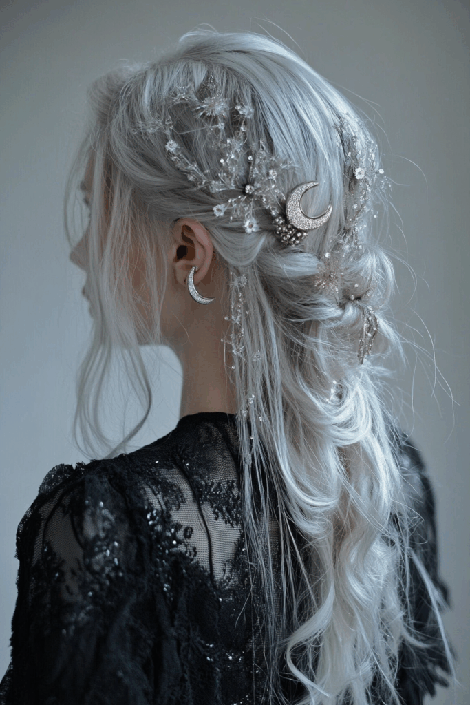 This look has always reminded me of evenings out in December, when fairy lights bounce off every strand. It’s festive without being over the top, and that’s exactly why I love it for this season.