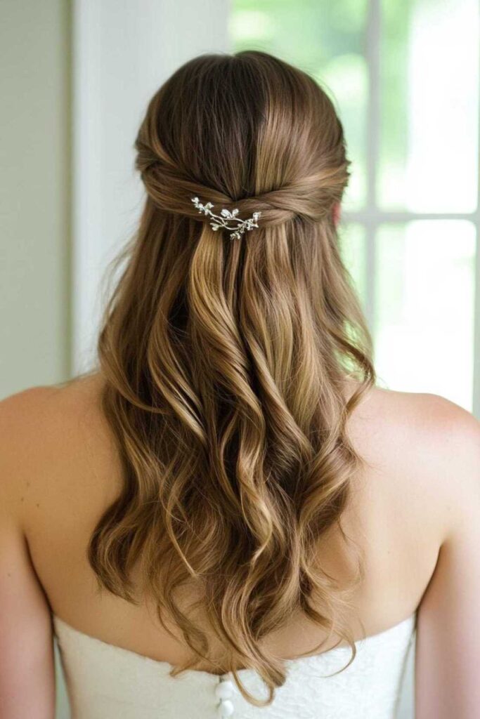 There is such a lissom beauty in this half-up braid. Braiding the strands down the back gives a romantic yet functional look and leaves most of the hair flowing while still adding detail. It can be used during intimate parties at home or just a night out.