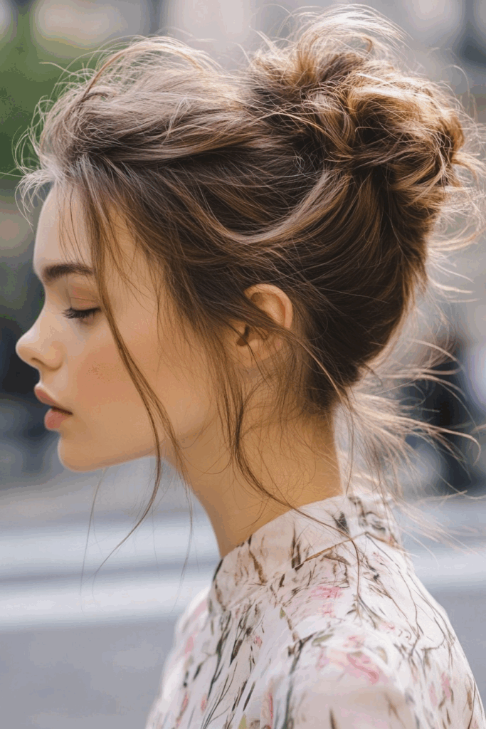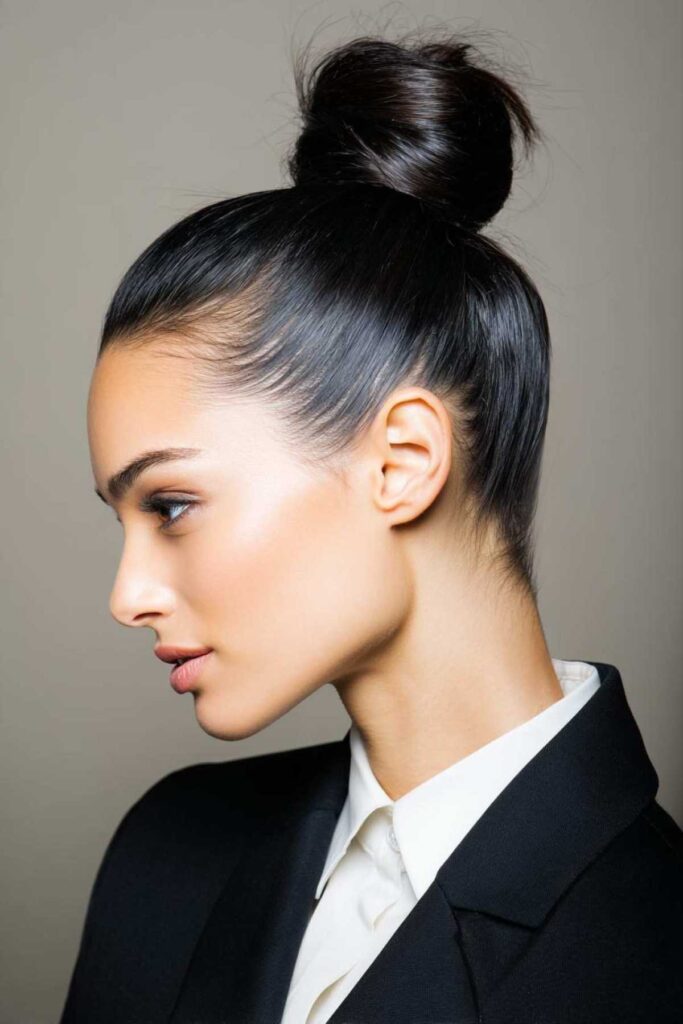 For extra volume at the crown, try teasing it first. Gently backcomb the roots. Then create your bun. It gives that perfect amount of lift. It makes the messy bun look even better.