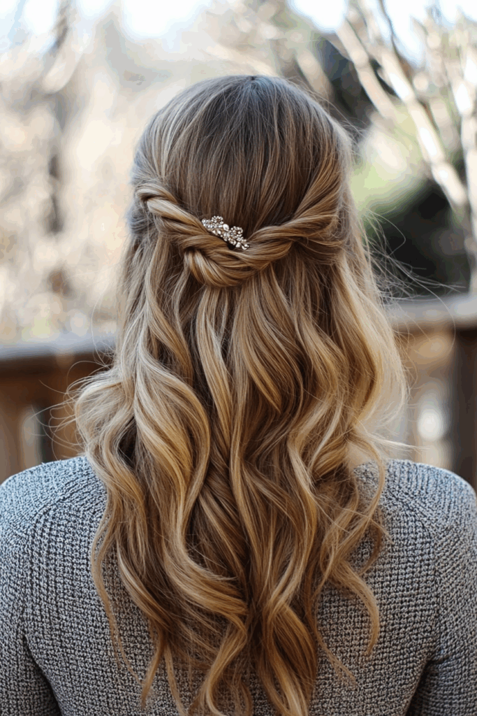To secure the twisted section, use a decorative clip. It adds a little sparkle. It also holds everything in place. It’s a pretty way to finish the style. Your hair will look so put-together.