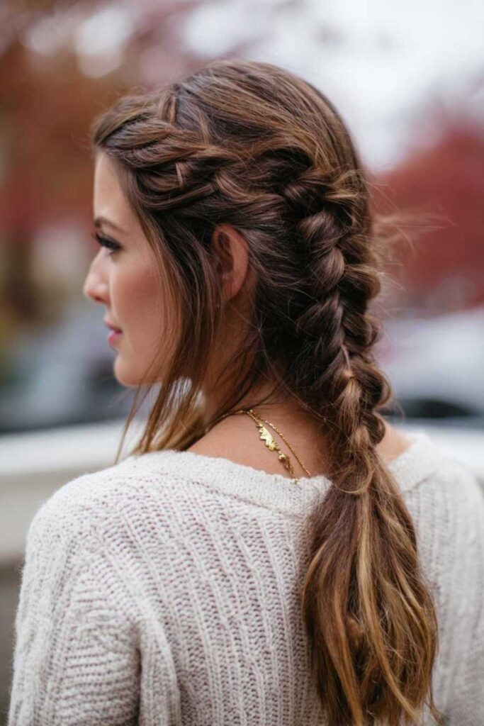 If you prefer to keep your hair to one side, a side braid is a perfect option. It keeps strands tucked in while still looking soft and romantic.