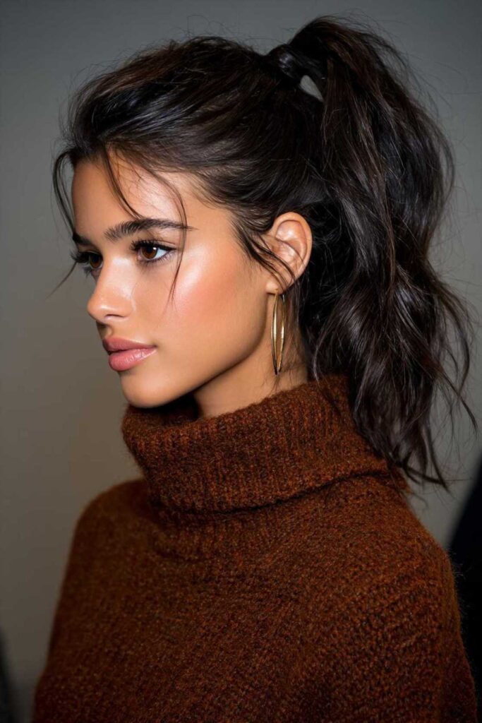 A high ponytail is a fantastic choice for fall. It looks so clean and polished, and it really complements those cozy sweaters. It keeps your hair off your neck, which is great when you start to feel warm in your layers. To elevate it, try wrapping a strand of hair around the base of the ponytail to hide the elastic. It makes it look so much more intentional. My top tip for keeping it smooth and sleek is to use a boar bristle brush when you’re gathering your hair. It helps tame any flyaways and gives it that super-glossy finish.