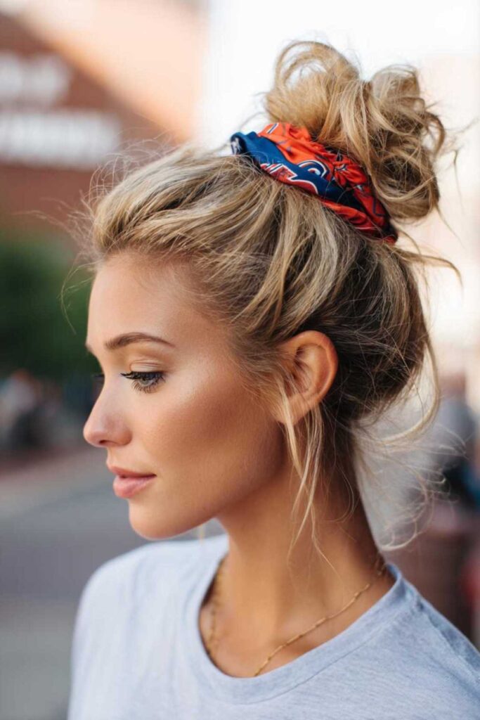 A voluminous messy bun is a comfortable game day favorite. Tuck in team-colored scrunchies or ribbons. This is a casual but stylish option. It’s perfect for a relaxed game day vibe. For extra volume, tease the hair before creating your bun. This gives it that perfect, effortless fullness that looks great.